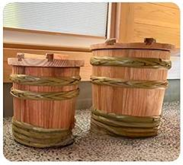 ▲木樽で味噌作り(2月頃)